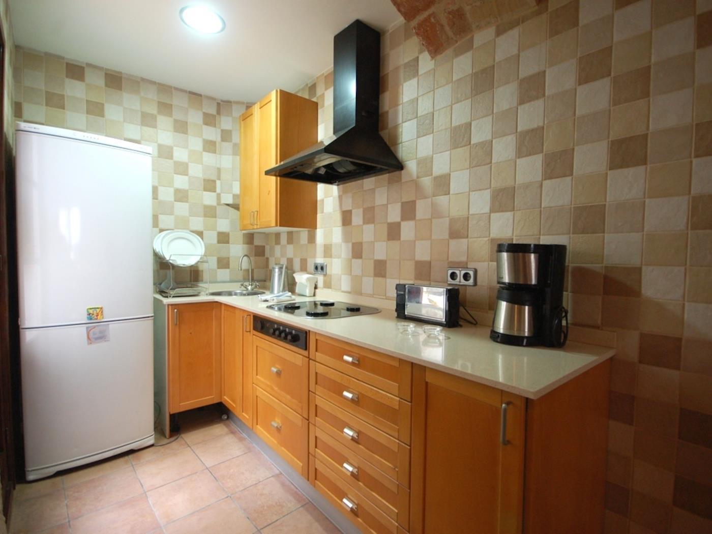 Bonito y acogedor apartamento en una rústica casa del siglo XVII, totalmente restaurado conservando sus paredes de piedra, y decorado con un ambiente muy acogedor y romántico.Situado al lado de la iglesia, en el casco antiguo, a solo 1 minuto de la plaza principal y del centro del pueblo.DistribuciónEl apartamento, tiene 1 dormitorio, 1 baño, salón comedor con cocina abierta y un bonito patioWifi incluido en el precio.Posibilidad de parking privado, opcional con extra coste de 10 euros diarios, a solo 3 minutos del apartamento.Tiene capacidad para dormir de hasta 4 personas, con la siguiente distribución:Dormitorio con 1 cama dobleSofá cama doble en el salón comedor.UbicaciónEl apartamento está situado al lado de la iglesia, en el casco antiguo, a solo 1 minuto de la plaza, del centro y restaurantes de primera.A menos de 1 minuto encontrarás la plaza de la Iglesia, con varios restaurantes donde podrás disfrutar de tus comidas con un ambiente muy tranquilo, al mismo tiempo que tus hijos juegan por la plaza libremente y sin peligros de coches.A solo 1 minuto encontrarás un pequeño supermercado y la zona comercial donde es difícil no pararse a ver, alguna bonitas tiendas ….