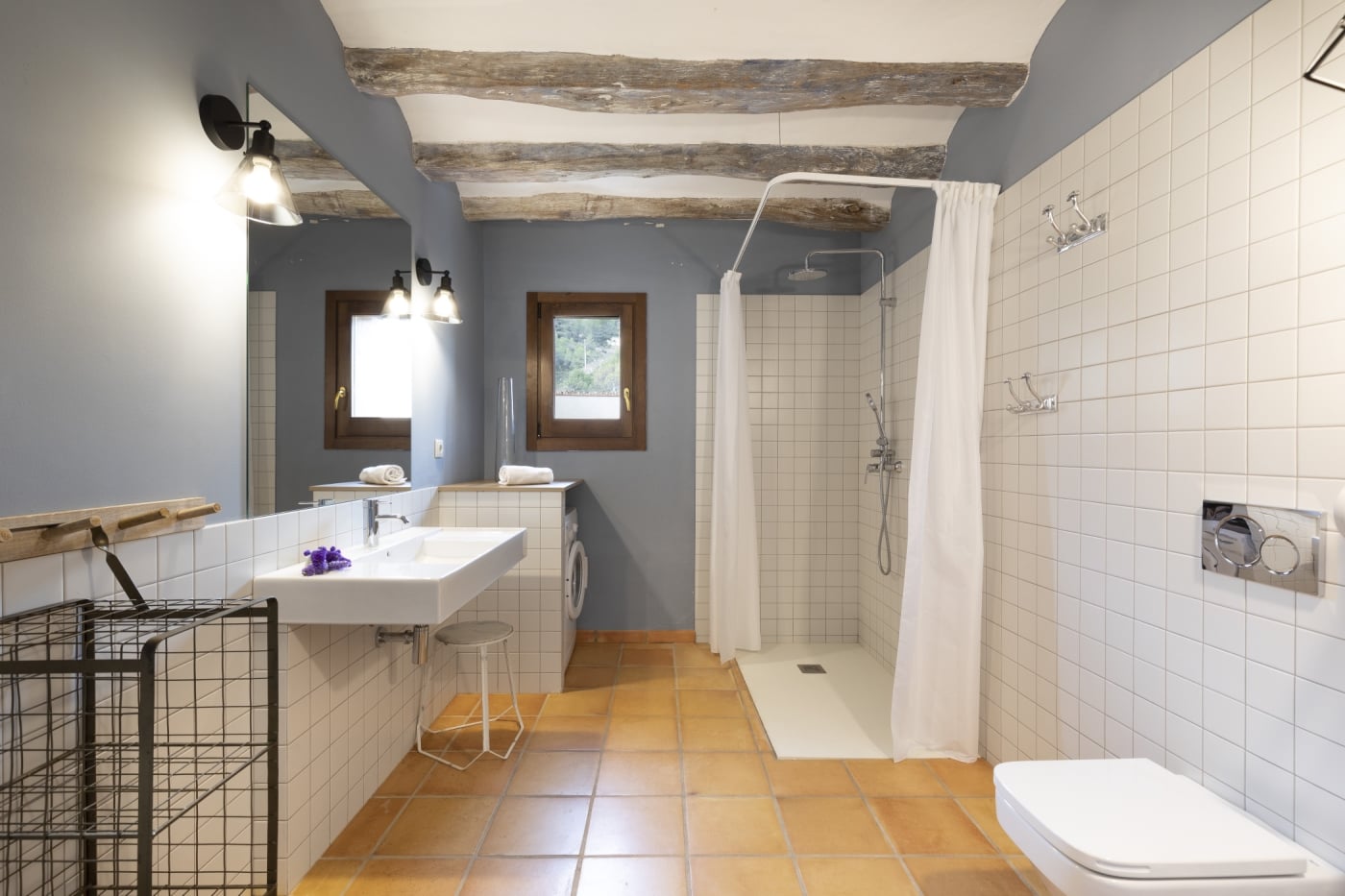Segunda planta: 3 habitaciones, dos dobles y 1 con 2 camas individuales y 2 baños independientes (1 con ducha y 1 con bañera).